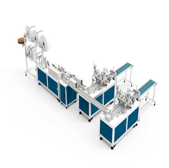 Tıbbi yüz maskesi makinesi, tam adı seri üretimde tek kullanımlık tıbbi yüz maskeleri üretmek için kullanılan otomatik yüksek hızlı düz kulak askısı maskesi üretim hattıdır. Tıbbi cerrahi yüz maskesi yapma makinesi hattı, cerrahi yüz maskeleri veya tek kullanımlık yüz maskeleri üretmenin tüm prosedürünü bitirmek için bileşenlerden oluşur, hammaddeleri iletmek için konveyör cihazlarından oluşur (dokuma olmayan kumaş katmanları, burun klipsi metal tel, kulak askısı ipi) , kesme işlemi (maske gövdesi kesme, burun klipsi kesme), kulak halkalarının kaynak işlemi, katlama işlemi vb.